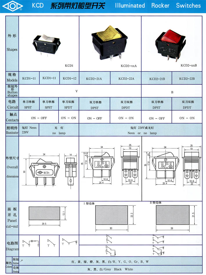• KCD1/KCD2-xxA,xxB帶燈船型開關 產(chǎn)品型號:KCD1/KCD2-xxA,xxB